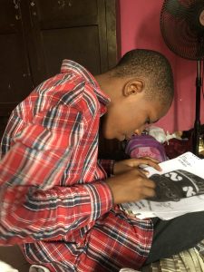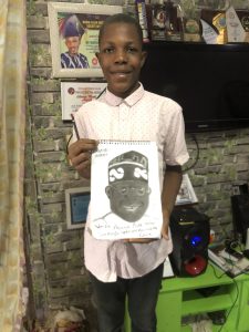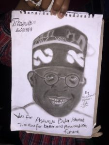 The senior prefect of his school put an inscription ‘Tinubu lokan and vote for Tinubu for the better and rewarding future in his art work.