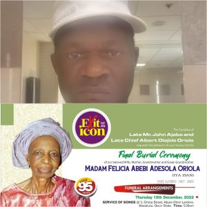 Oriola Oris An International artiste manager and promoter who lost his mother on Thursday, 17th November, 2022 has announced details of the burial ceremony.