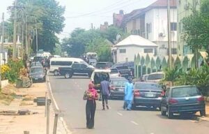 Photographs seen by our correspondent on Wednesday show some armed EFCC personnel laying siege to the ex-governor’s home on Benghazi Street, Wuse Zone 4, Abuja.
