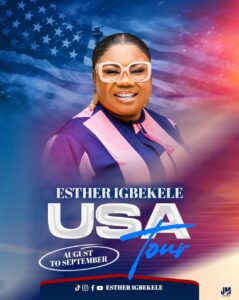 Renowned gospel powerhouse Esther Igbekele is once again taking her soul-lifting sound beyond borders as she embarks on her highly anticipated USA Tour 2025, scheduled to run from August through September. Tagged “USA Tour August–September,” the tour is poised to be a spiritual and cultural experience for her fans in America.