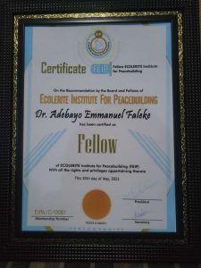Ecolerite Institute for Peace and Advancement, EIPA, has inducted 35 eminent Nigerians as professional fellows of the institute in a bid of promoting peace in Nigeria and Africa at large