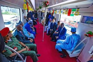 He also joined the Lagos State Governor, Babajide Sanwo-Olu, and other dignitaries in a ride from the Marina Station to National Theatre Station.