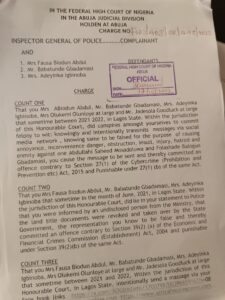 However, as the legal proceedings unfolds, the defendants are now facing charges before the Federal High Court of Nigeria in the Abuja Judicial Division. The charges include alleged conspiracy to transmit false messages via social media, providing false information about the revocation of land title documents, and intentionally sending defamatory messages.