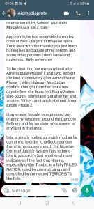 Mr. Ibile, as he is affectionately called, unveiled a voice note detailing how Babatunde Olalere Gbadamosi had enlisted the services of both Adeyinka Igbinoba and Olukemi Olunloyo to launch a media offensive aimed at inciting public sentiment against him. He also leaked a series of evidences to bolster his claims. Among these, he presented evidence of Gbadamosi’s alleged discussions with some senior police officers in Abuja, wherein they purportedly conspired to have Saheed and Folasade Balogun arrested. This plot, according to Mr. Ibile, was driven by Gbadamosi’s resentment towards him for defending Folasade Balogun’s property at Redbrick home.