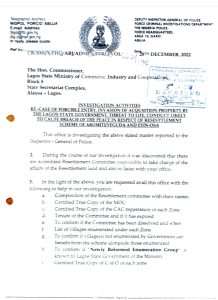 In response to the escalating conflict, the Lagos State Commissioner of Police, Idowu Owohunwa, yesterday 13th June invited all parties involved in the land dispute to his office at the police command in Ikeja, Lagos for a hearing.