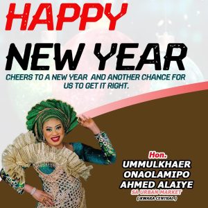 The Special assistant on Urban Market Centra, Honourable Umulkhaer Onaolamipo Ahmed Alaiye has rejoiced with Kwarans both home and in diaspora over the new year celebration, praying that the 2023 should  bring everlasting joy, happiness and golden opportunity for all and sundry.