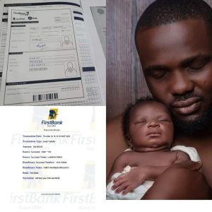 However, the brilliant and outspoken thespian made the new development known to his fans via his social media handles. In his words, he said ‘At ONE MONTH, my son now have a BANK ACCOUNT First Bank of Nigeria Ltd] We his parent made the first deposit.