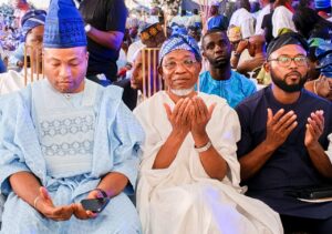 Oranmiyan and symbol of Omoluabi got rossy welcome as he stormed the Fidau prayer with his entourage. His entrance was welcomed with gigantic ovation.