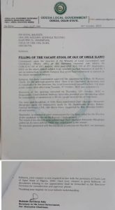 In a letter signed by the Secretary to Odeda Local Government, Makinde Zacheus Adio on behalf of the council chairman, it was gathered, has been forwarded to Osile Oke-Ona Egba, Oba(Dr) Adedapo Tejuoso for his consent for onward transmission to the Ogun State Government.
