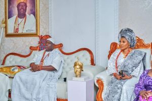 Arole Oodua Olofin Adimula, Ooni Adeyeye Enitan Ogunwui,CFR, Ojaja II, The Ooni of Ife has formally received his wife, Olori(Dr) Opeoluwa Elizabeth Akinmuda in line with customs and traditions of the Ife Kingdom known as source of the entire Oduduwa race worldwide.