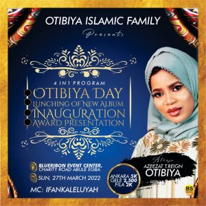 Lagos would be set agog, as one of the notable female Islamic singer, Alhaja Azeezat Treign Otibiya is holding an epoch making event on 27th March, 2022.