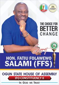 Others also include; ~Facilitation of road alongside other leaders which are Reconstruction of Olusegun Osoba Road, Agbado (Agbado Ward 4)