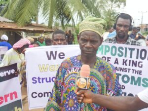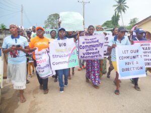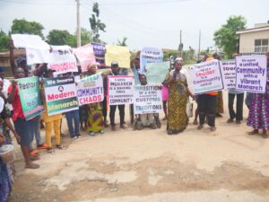 The protesters, who were led by the youth leaders of the community argued that the lack of a traditional ruler in the community for almost ten years has had a negative impact on its development.