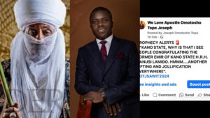 In his prophetic release for 2024 he stated that in Kano he sees people ccongratulating the former Emir of Kano state, HRH Sanusi Lamido. He spoke about his reinstatement ans restoration.