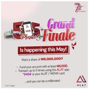 Encouraging Nigerians to take advantage of the last draw of the 5 for 5 Promo Season 3, Mabel Adeteye, elucidated the minimum requirements for qualification. “The requirements are simple, fund your account with at least N5,000 and make up to 5 transactions using the ALAT App, *945# or your ALAT/Wema Card, maintaining a N5,000 minimum average account balance. It doesn’t matter where you are, what you do or when you started banking with us, you can be a winner. NYSC members have won, business owners, undergraduate students, working class professionals, everyone from Gen Z to the baby boomers—there’s room for all in the Wema Bank family and the 5 for 5 Promo. A simple download of the ALAT App could be the first step for potential winners. I look forward to May 31st, as we put the final bow on this exceptional journey that has made the 5 for 5 Promo Season 3 a success”.