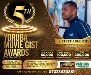 The much anticipated 5th edition of the prestigious Yoruba Movie Gist Awards ceremony, will hold tomorrow Sunday November 13th 2022.